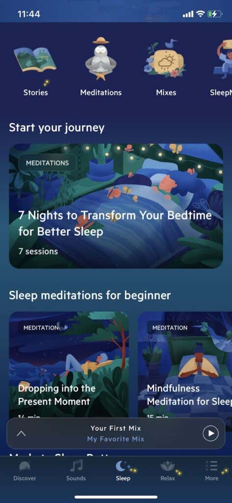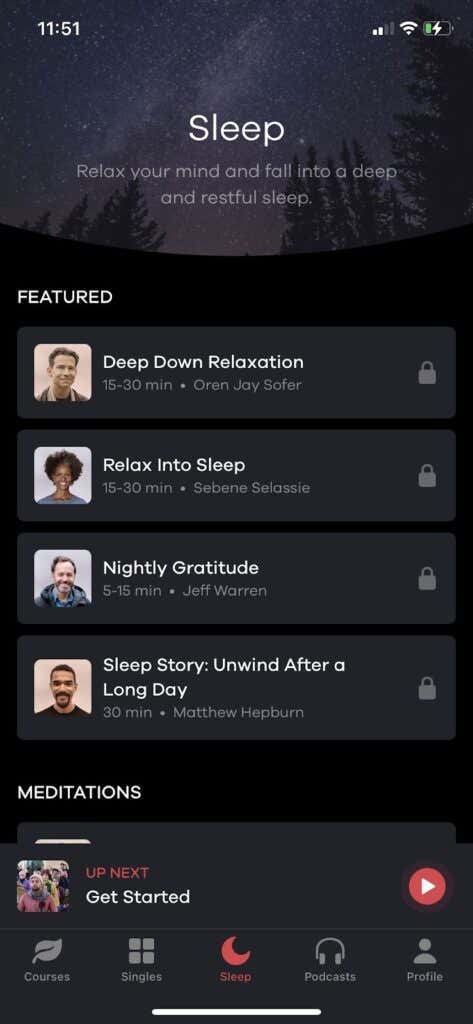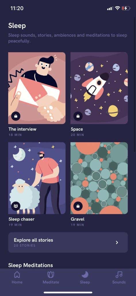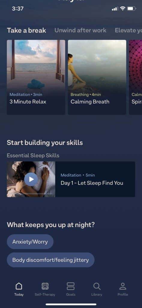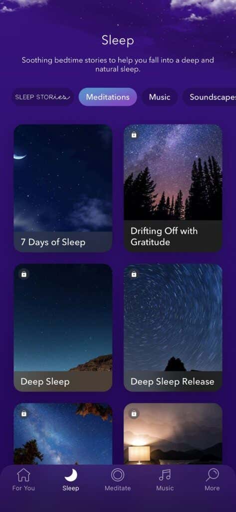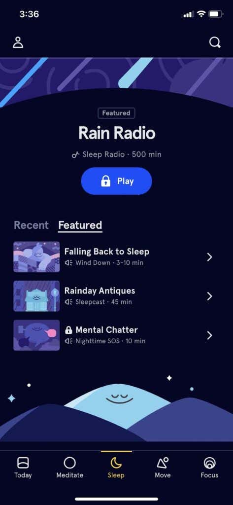 Además de eso, encontrarás música para escuchar si eso es lo tuyo. También hay historias de meditación del sueño, si encuentra que la visualización lo ayuda a relajarse. Con la versión gratuita de la aplicación, hay varias selecciones de audio disponibles; sin embargo, tendrá acceso a toda la aplicación por $69.99 al año. Asegúrese(Make) de consultar con su proveedor de atención médica,(health care provider) ya que algunos le dan acceso a la aplicación de forma gratuita como uno de los beneficios de tener su seguro.