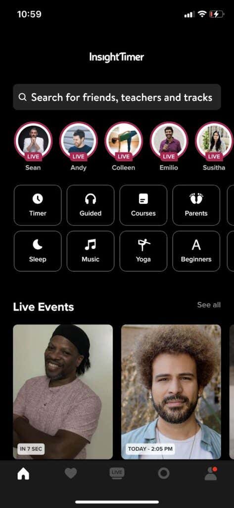 Otra gran parte de Insight Timer es que puedes encontrar toneladas de meditación en vivo(Live meditation) , yoga y otras sesiones similares de maestros expertos. Algunos de estos tienen lugar cuando se va a dormir, por lo que puede unirse justo antes de acostarse. También hay decenas de miles de ofertas de audio gratuitas, por lo que no se quedará sin contenido en el corto plazo.