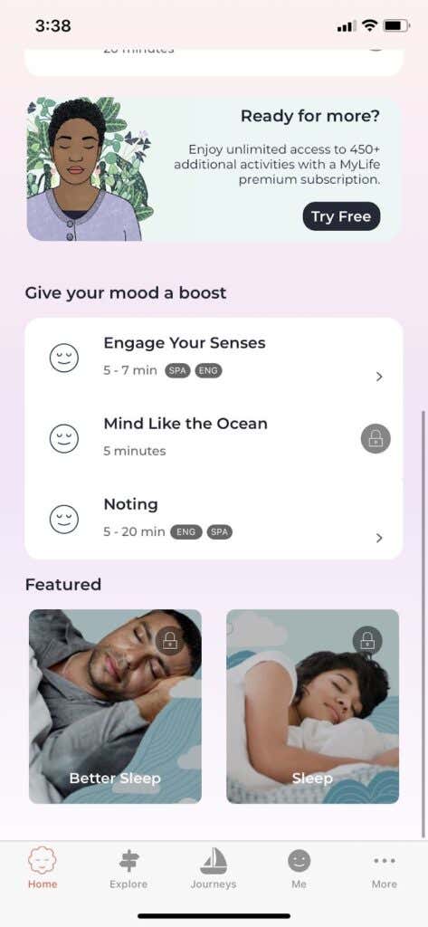 Una parte única de esta aplicación son los registros diarios, en los que puede decirle a la aplicación cómo se siente su cuerpo y su mente(body and mind) , así como identificar las emociones específicas que desea abordar. La aplicación te proporcionará contenido que puede ayudarte. Hay toneladas de ofertas gratuitas disponibles. Sin embargo, si desea acceder a todo lo que la aplicación tiene para ofrecer, puede pagar $9.99 al mes o $58.99 al año.
