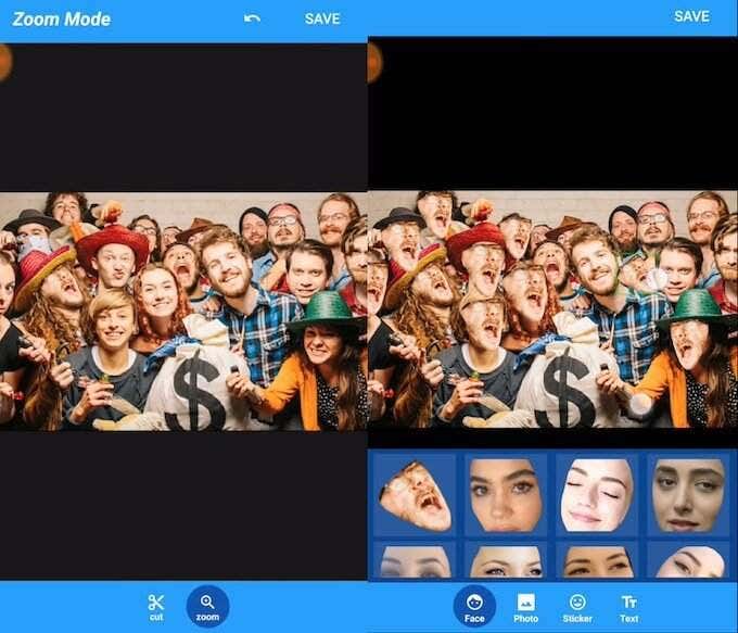 Ni siquiera necesita usar dos imágenes separadas. Celebrity Face Swap le permite intercambiar las características de los rostros de dos personas de la misma imagen. Eso puede ser muy útil si usa una imagen grupal para crear un collage divertido para su familia o amigos.