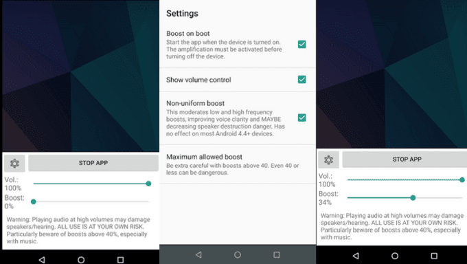 Sin embargo, el desarrollador de la aplicación recomienda moderación al usar la aplicación, ya que puede dañar su audición o los altavoces cuando se usa durante un período prolongado. Además, la aplicación no funciona con todos los dispositivos Android , especialmente aquellos que ejecutan las versiones de Android 4.2.1 a 4.3, ni es ideal para ajustar el volumen del altavoz en las llamadas telefónicas.