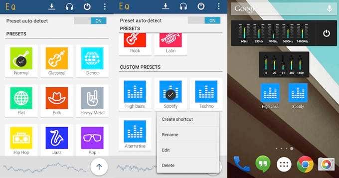 Entre estas características se incluyen un ecualizador para cambiar la envolvente de frecuencia del sonido, Bass boost para amplificar o aumentar las frecuencias bajas y un Loudness Enhancer para aumentar el volumen. Además, obtiene virtualización para mejorar el efecto estéreo, 12 ajustes preestablecidos o puede crear los suyos propios y widgets de ecualizador para su pantalla de inicio.