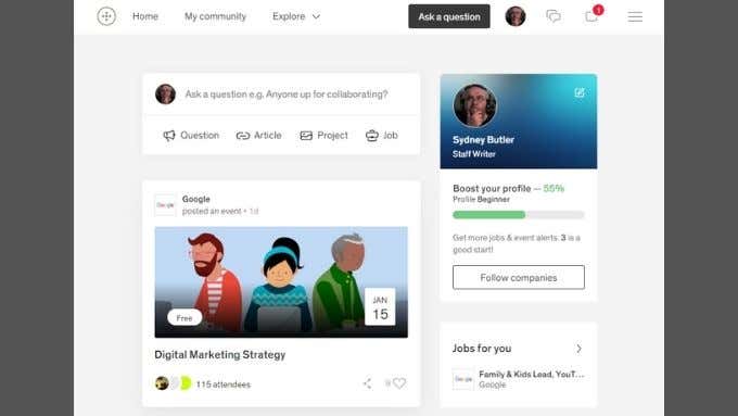 The Dots es en realidad más una alternativa a los gustos de LinkedIn , pero muchas personas usan plataformas como Facebook o Twitter para construir una red profesional menos formal, por lo que The Dots todavía es algo que debemos incluir en la conversación.