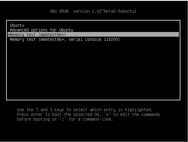 - Utilice las teclas de flecha para encontrar la etiqueta ubuntu memtest86 +