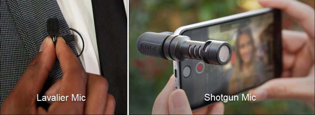 Hay dos tipos a considerar: un micrófono lavalier (del tipo que se engancha a la camisa) o un micrófono estilo(style mic) escopeta . El micrófono lavalier es bueno para grabar si eres el único que habla. Podrías conseguir dos lavaliers para las entrevistas. Los(Shotgun) micrófonos de cañón se parecen a los micrófonos de mano que ves que usan los cantantes, pero son mucho más pequeños y se conectan a tu teléfono.