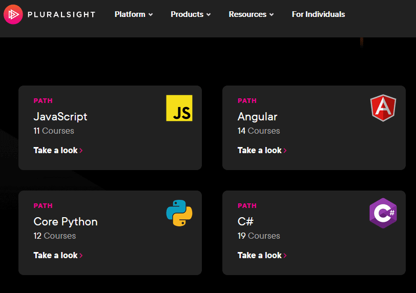 Pluralsight es una plataforma de aprendizaje como Udemy y Coursera , pero se enfoca solo en habilidades tecnológicas. Te ofrece todos los cursos de TI que puedas imaginar, pero también puedes elegir una ruta de aprendizaje preestablecida. La ruta de aprendizaje le enseñará una cierta habilidad, como la codificación en Python , de principio a fin.