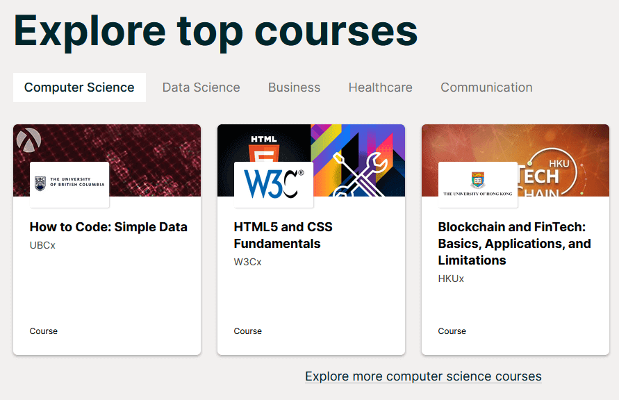 Si eres un gran fanático de la educación formal, edX podría ser el mejor sitio para aprender a programar. Ofrece cursos de programación e informática de nivel universitario de las universidades más prestigiosas del mundo.