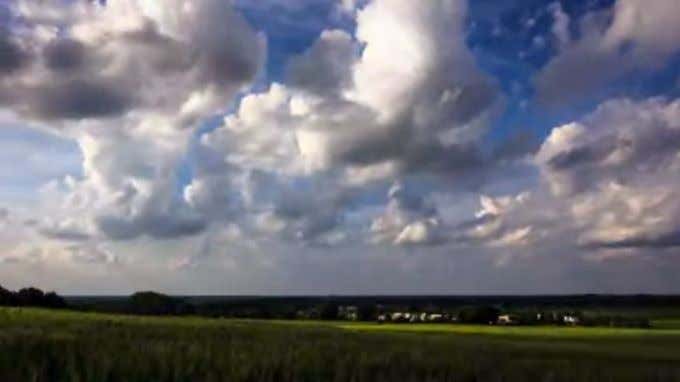 Este fondo de pantalla es en realidad un pequeño archivo de video descargado y utilizado en Desktop Live Wallpapers . Muestra un campo abierto de par en par con nubes que se mueven por el cielo.
