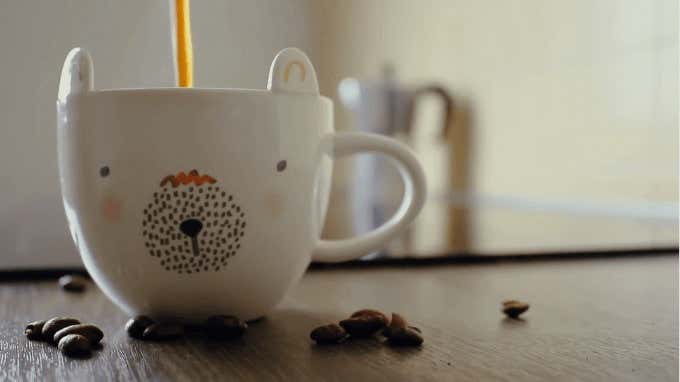 El café es parte de la vida de casi todos. Para muchas personas, es esencial para levantarse por la mañana. Este fondo de pantalla muestra una tranquila escena matutina en la que alguien fuera de la pantalla vierte una taza de café en una adorable taza de oso.