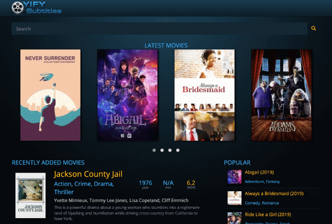 Nombrado en honor al conocido grupo de piratería y con sus lanzamientos en mente, YIFY Subtitles es otro sitio fácil de usar para descargar subtítulos. A diferencia de algunos de los otros sitios principales, YIFY Subtitles solo ofrece subtítulos de películas para descargar.