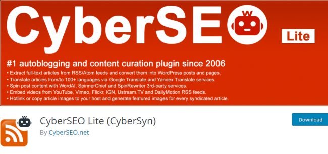Este es otro brillante complemento de administración de contenido para WordPress. Con este complemento, puede generar automáticamente sus publicaciones desde la fuente RSS. También le permite incrustar videos de YouTube, Vimeo, Flickr, IGN, Ustream.tv y fuentes RSS de DailyMotion.