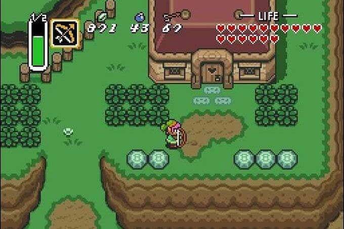 La jugabilidad de arriba hacia abajo recuerda al juego original para NES , pero con gráficos muy mejorados y un mundo mucho más grande para explorar. The Legend of Zelda : A Link to the Past se puede jugar en una variedad de consolas modernas, incluidas Nintendo Switch Online y SNES Mini .