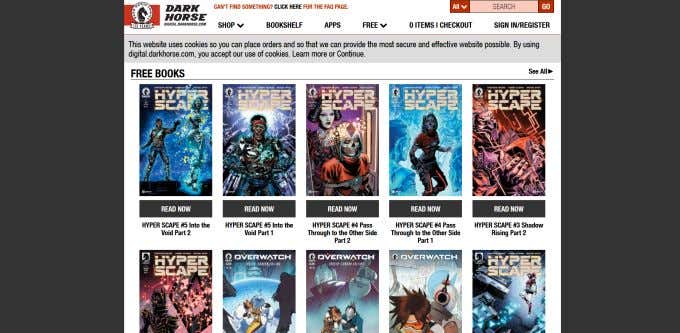 Solo necesita registrarse para obtener una cuenta gratuita. Entonces puedes leer los cómics. por darkhorse(Caballo negro) digitalmente Si lo desea, también puede descargar cómics a su dispositivo móvil para leerlos sin conexión.