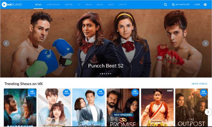 El sitio web también tiene una serie MX Original que puedes ver gratis. Sin embargo, la gran base de datos de películas y programas de televisión del reproductor MX hace que sea más difícil navegar, ya que hay demasiadas cosas en la pantalla.