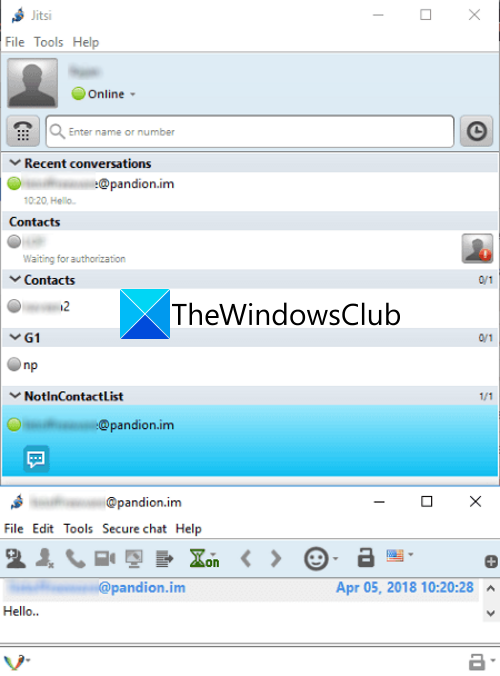 Jitsi es un cliente (Jitsi)XMPP gratuito, de código abierto y multiplataforma . Está disponible para Windows 11/10 , así como para otros sistemas operativos como Mac , Linux , etc. Es un software seguro de llamadas de voz y video que utiliza múltiples protocolos de red, incluidos XMPP , AIM , ICQ , SIP , IPPI , etc. los chats y las llamadas realizadas a través de este software están encriptados.