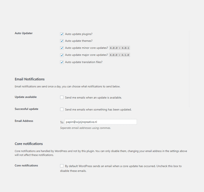 Companion Auto-Update le permite actualizar automáticamente todos sus complementos (y temas y versiones de WP si lo desea) a través de las opciones de configuración.