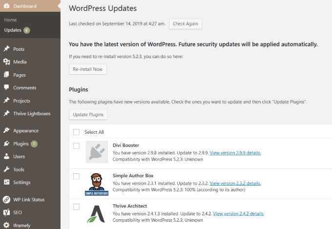 Use el sistema de actualización incorporado de WordPress(Use The WordPress Built-In Update System)