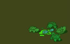 Fondo verde monocromático y minimalista con pequeñas tortugas