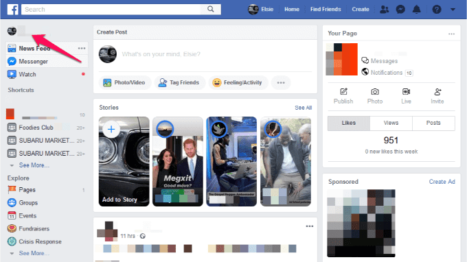 - Para hacer esto, vaya a su sección de noticias(News Feed) y haga clic en su nombre en la parte superior izquierda de la pantalla para abrir su perfil.