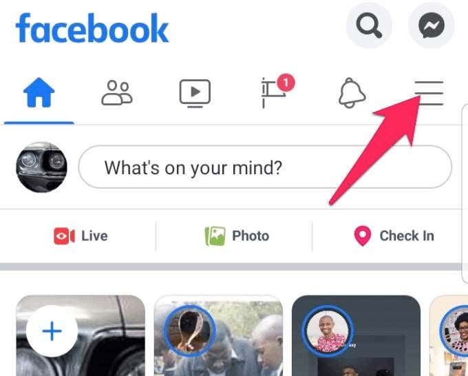 - Si está usando Facebook desde su teléfono inteligente(using Facebook from your smartphone) o tableta para crear un álbum de fotos a través de la aplicación de Facebook , toque el menú (tres líneas horizontales) en la parte superior derecha de la pantalla.