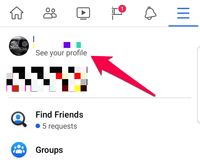 - Toca el nombre de tu perfil para abrir tu página de perfil.