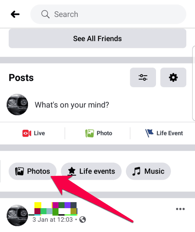 - Para hacer esto, ve a tu línea de tiempo y haz clic en Fotos(Photos) debajo de tu foto de portada.