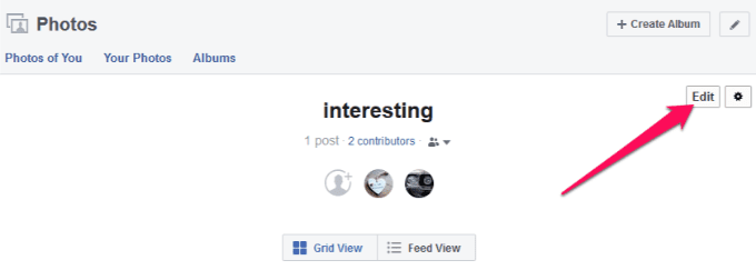 - Haz clic(Click) en el álbum de fotos que contiene la foto o las fotos que te gustaría mover a un álbum diferente. Se abrirá una nueva página que muestra todas las fotos de ese álbum. Mueve el cursor sobre una foto o haz clic en Editar(Edit) en la parte superior derecha (puedes hacer clic en el icono del lápiz si lo prefieres).