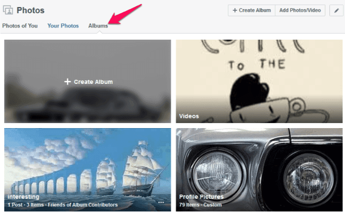 - Sin embargo, para otros álbumes, puede eliminarlos yendo a su página de perfil de Facebook(Facebook) y haciendo clic en Fotos(Photos) . Haz clic en Álbumes(Albums) y haz clic en el álbum de fotos que deseas eliminar.