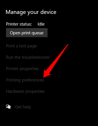 - Seleccione su impresora y luego seleccione Administrar(Manage) > Preferencias de impresión(Printing Preferences) y luego seleccione Omitir página en blanco(Skip Blank Page) .