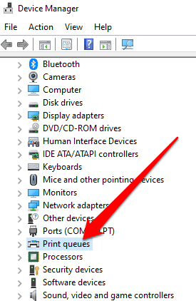 - Haga clic con el botón derecho en Inicio(Start ) > Administrador de dispositivos(Device Manager) y seleccione la sección Cola de impresión(Print queue ) para expandirla.