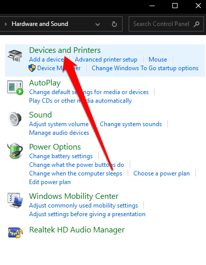 - Seleccione Dispositivos e impresoras(Devices and Printers) .