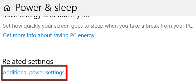 En Configuraciones relacionadas(Configuraciones relacionadas) abierto Configuraciones de energía adicionales(Configuración de energía adicional) .