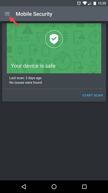 App Lock de Bitdefender hace exactamente eso: me permite usar un código PIN(PIN code) para bloquear las aplicaciones que elijo. Para hacerlo, debe iniciar Bitdefender Mobile Security & Antivirus . Abra su menú principal tocando el botón que parece tres líneas apiladas. Lo encontrará en la esquina superior izquierda(left corner) de la aplicación Bitdefender Mobile Security & Antivirus .