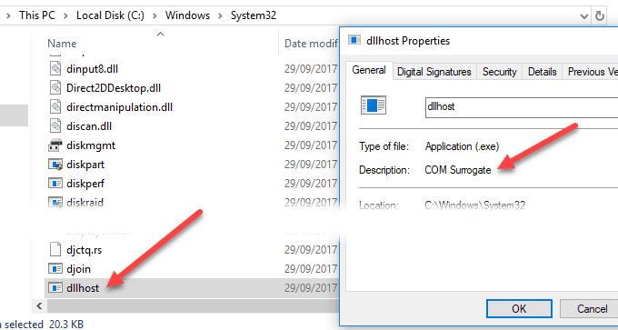 Si el proceso Adjunto COM lleva a un archivo llamado «dllhost» en la carpeta C:WindowsSistema3 2, es poco probable que sea un virus. Si se ejecuta en otro lugar, ejecute un análisis de virus inmediatamente.