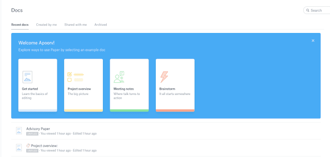 Dropbox anunció Dropbox Paper en 2015 y lanzó el producto en 2017 como una nueva forma de organizar y colaborar con miembros del equipo de cualquier parte del mundo. Esencialmente, quería una parte del pastel colaborativo en línea que ha sido rehén principalmente de Google Drive y Office 365 .
