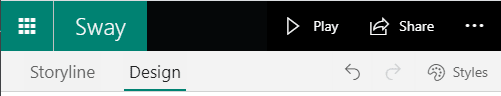 El espacio de trabajo de Sway se divide en dos pestañas: Argumento(Storyline) y Diseño(Design) .