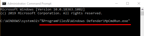 “%ProgramFiles%Windows DefenderMpCmdRun.exe”