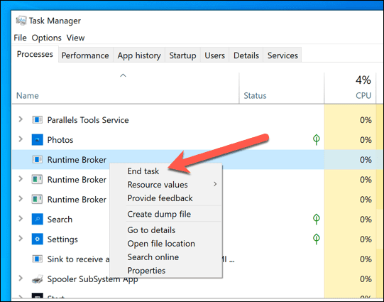 Esto puede explicar pequeños picos en el proceso de Runtime Broker en el Administrador de (Runtime Broker)tareas de Windows(Windows Task Manager) . Dependiendo de las especificaciones de su PC actual, los picos en el uso de la CPU(CPU) deberían ser mínimos y, por lo general, no deberían afectar el rendimiento general del sistema.