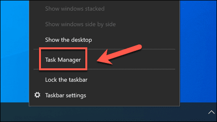 - Para hacer esto, deberá abrir el Administrador de tareas de Windows(Windows Task Manager) . Para hacer esto, haga clic derecho en la barra de tareas y seleccione la opción Administrador de tareas .(Task Manager)