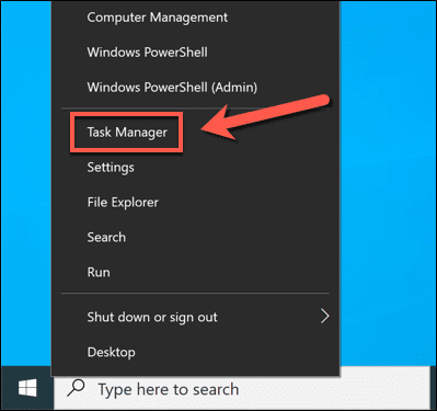 - Para hacer esto, primero deberá abrir una nueva ventana del Administrador de tareas haciendo clic con el botón derecho en el menú (Task Manager)Inicio(Start) o en la barra de tareas y seleccionando Administrador de tareas(Task Manager) .