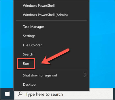 - Para ejecutar SLUI.exe manualmente, haga clic con el botón derecho en el menú Inicio(Start) y seleccione la opción Ejecutar . (Run)Alternativamente, presione las teclas Windows + R en su teclado.