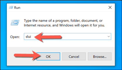 - En el cuadro de diálogo Ejecutar, escriba slui (o slui.exe ) y seleccione Aceptar(OK) para ejecutarlo. Esto abrirá el menú correspondiente en Configuración de Windows(Windows Settings) . Si tiene problemas para activar Windows en línea y necesita soporte telefónico para ayudarlo a activarlo, escriba slui 4 en su lugar.