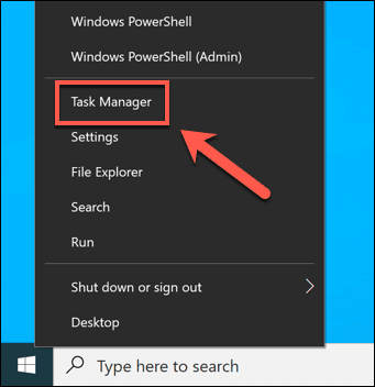 - Para ello, abra el Administrador de tareas(Task Manager) haciendo clic con el botón derecho en el menú Inicio(Start) (o en la barra de tareas) y seleccionando Administrador(Task Manager) de tareas en el menú contextual.