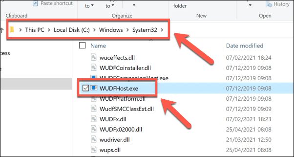 - Windows abrirá el Explorador(File Explorer) de archivos en la ubicación del proceso wudfhost.exe en ejecución. Debe encontrar el archivo en la carpeta C:WindowsSystem32 en su PC. Si no está en esta ubicación, el archivo no es original.