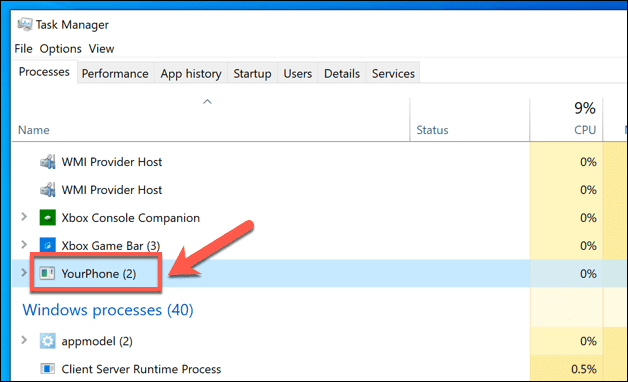 Si ve el proceso yourphone.exe (o similar) ejecutándose en el Administrador de tareas de Windows(Windows Task Manager) , entonces está ejecutando Windows 10 y tiene la aplicación Your Phone ejecutándose en segundo plano.