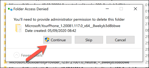 - Es posible que deba presionar Continuar(Continue) en la ventana emergente Acceso denegado a la carpeta para otorgar permiso para eliminar la carpeta.(Folder Access Denied )