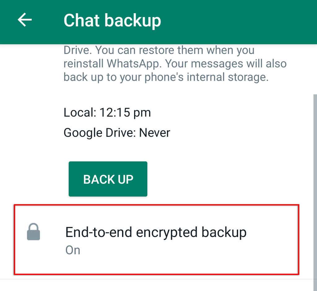 WhatsApp ofrece a los usuarios la opción de habilitar la copia de seguridad cifrada completa(copia de seguridad cifrada de extremo a extremo) para que nadie dentro (incluida la propia aplicación) pueda acceder a sus mensajes.