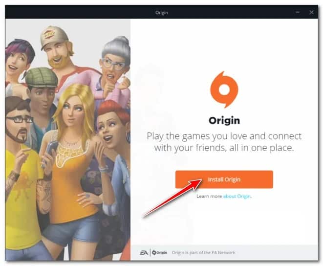 - Cuando estés dentro de la ventana de instalación, haz clic en Instalar Origin, luego sigue las instrucciones en pantalla para completar la instalación y omitir (con suerte) la aparición del error 20: 2.