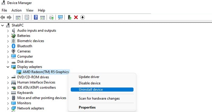 - Ahora haz clic en Desinstalar y una vez que se desinstale el controlador de gráficos, reinicia tu sistema.