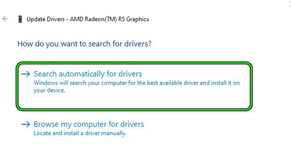 - Luego selecciona Actualizar controlador y selecciona Buscar controladores automáticamente.